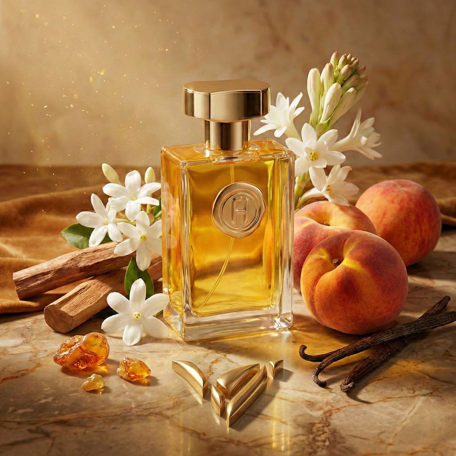 Fondo: Ambar, sándalo, almizcle, civeta, vainilla, vetiver y cedro.