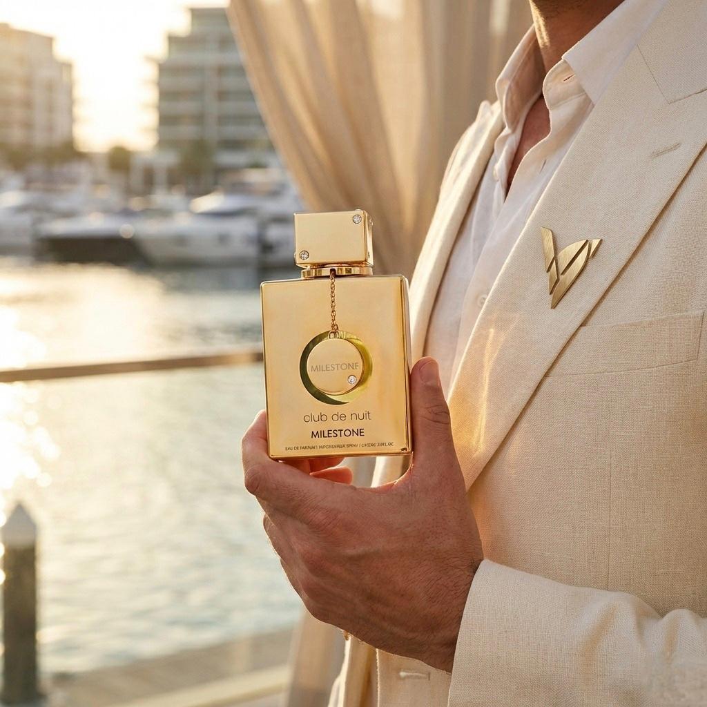 Armaf Club de Nuit Milestone (EDP) es un aroma acuático-frutal muy fresco y elegante: abre con notas marinas (brisa/sal) y frutas rojas sobre bergamota; en el corazón se siente violeta, maderas blancas y sándalo cremoso; y termina limpio y duradero con almizcle, ambroxan y vetiver, dejando una estela tipo “verano” sofisticada para uso diario.