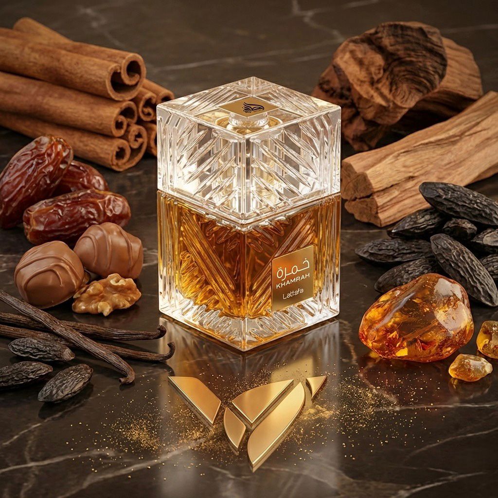 Khamrah de Lattafa Perfumes es una fragancia unisex de la familia olfativa aromática especiada, lanzada en 2022. Esta composición combina notas cálidas y dulces, creando un aroma envolvente y sofisticado.