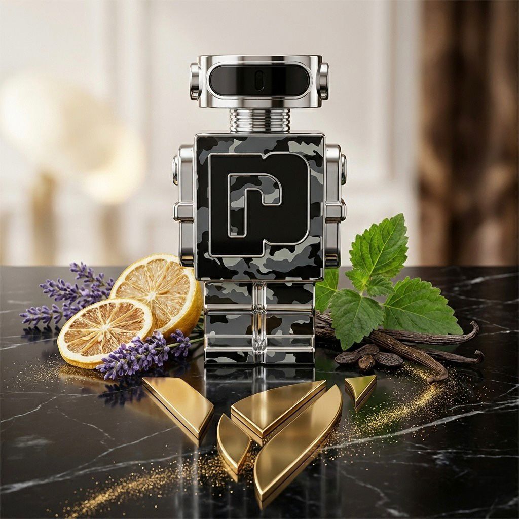 Phantom Legion de Paco Rabanne es una fragancia intrigante y moderna que fusiona notas frescas de cítricos y lavanda con acordes amaderados y especiados, creando un aroma vibrante, audaz y lleno de energía que evoca un aire de misterio y carisma.