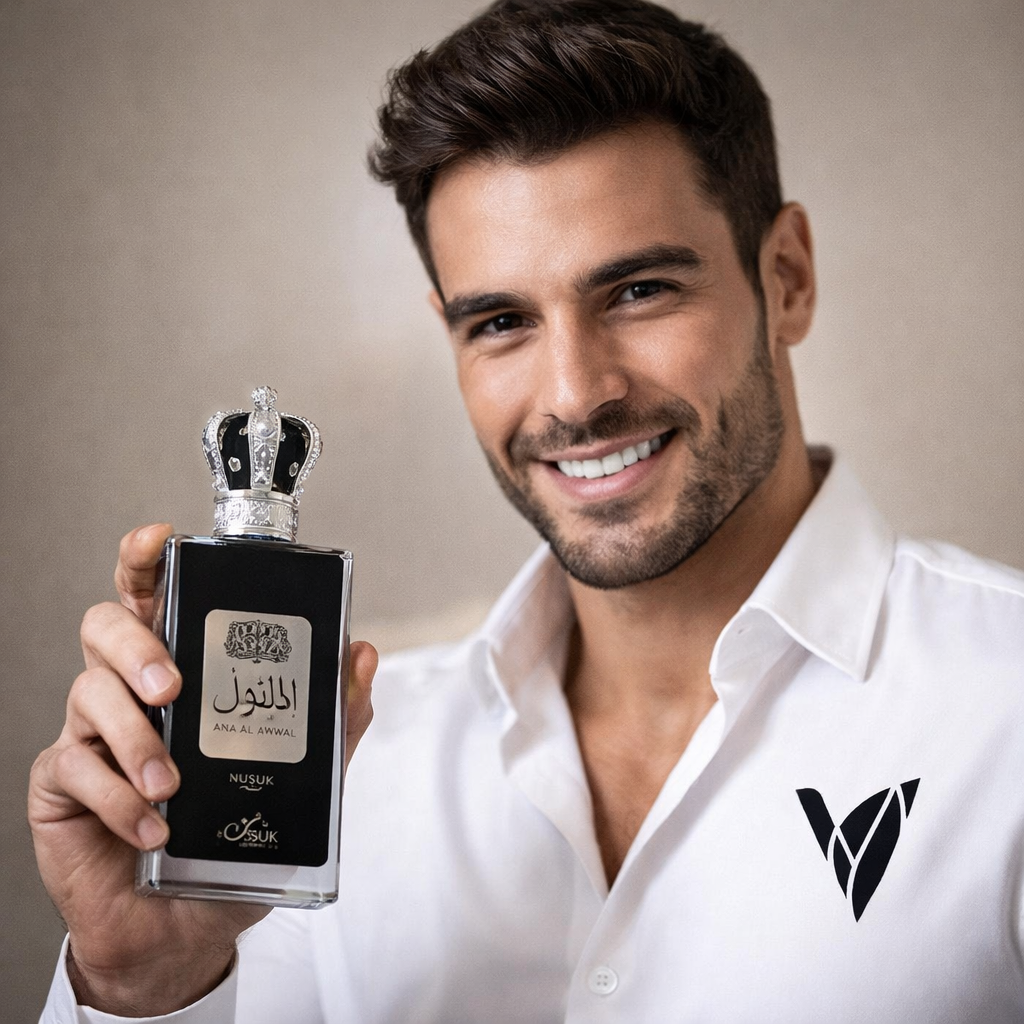 Nusuk Ana Al Awwal Black es una fragancia árabe cautivadora que fusiona el intenso aroma del oud con la suavidad del sándalo y la dulzura reconfortante de la vainilla. El ámbar y el caramelo quemado añaden una profundidad sensorial única, creando una experiencia olfativa rica y seductora que evoca una sensación de lujo y misterio.