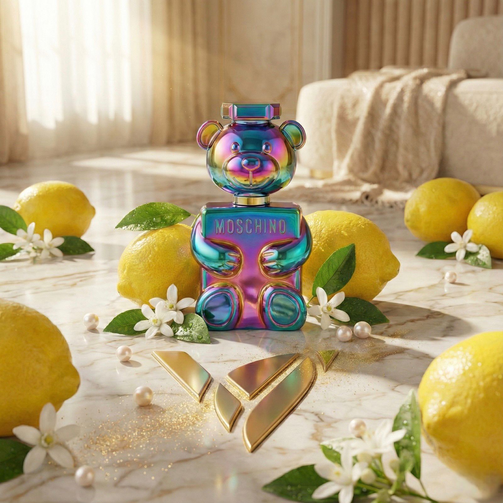 Toy 2 Pearl de Moschino es una fragancia de la familia olfativa floral frutal, lanzada en 2023 y creada por la perfumista Domitille Michalon Bertier en colaboración con IFF. Esta composición unisex destaca por su carácter chispeante y alegre, inspirado en la madreperla de Tahití y los mundos submarinos llenos de fantasía.