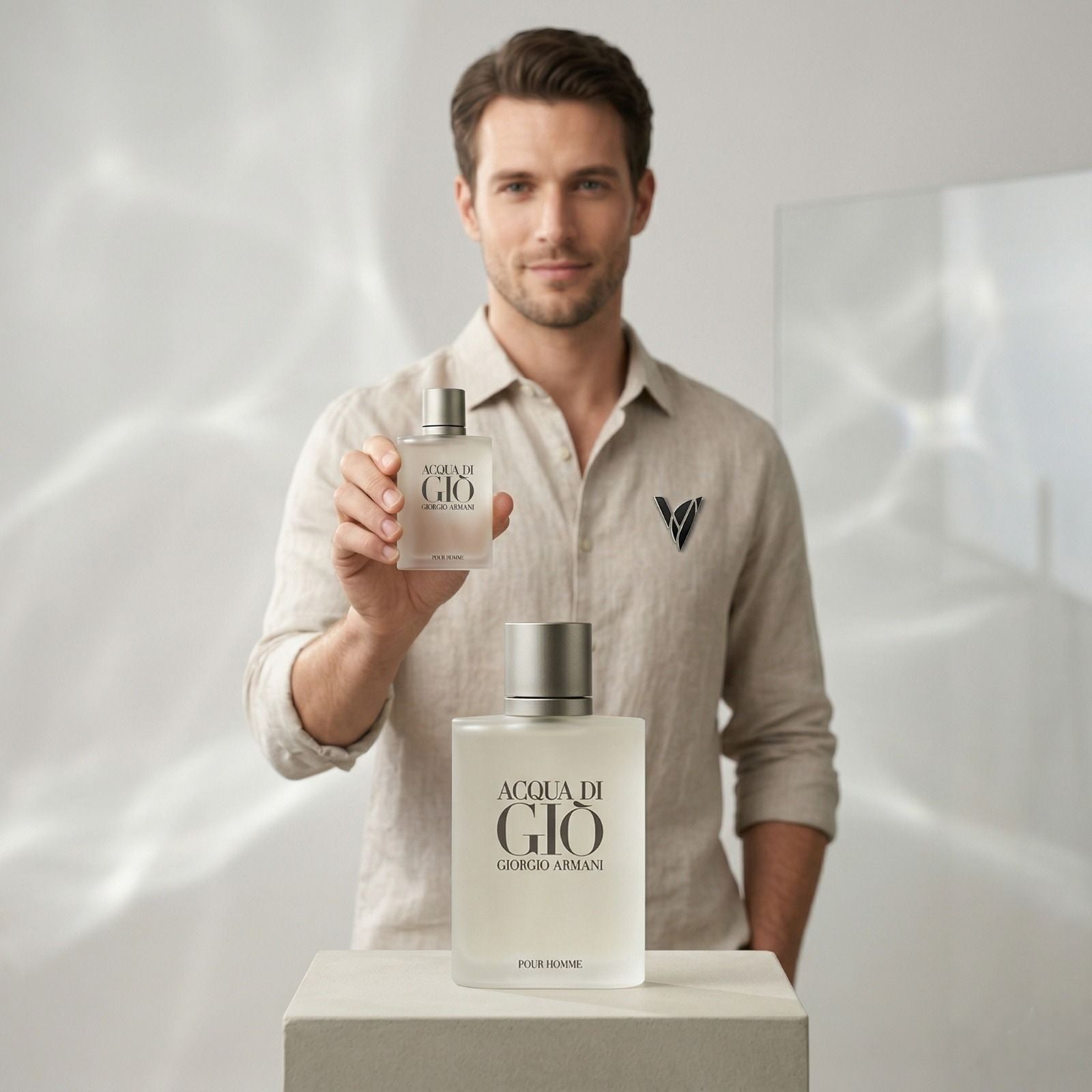 Giorgio Armani Acqua Di Giò Eau de Toilette es la fragancia másculina, mítica, fresca y acuática que ha creado Giorgio Armani inspirándose en la isla de Pantelleria, situada entre Sicilia y Túnez. Pantelleria es conocida como la Perla Negra del Mediterráneo al estar formada por suelo volcánico y presentar un paisaje de grandes contrastes. Por una parte su lado rocoso y salvaje en el que los paisajes son áridos, ventosos y erosionados por las olas y por otra, el del mar, el aire y el sol, símbolos de vitalidad.