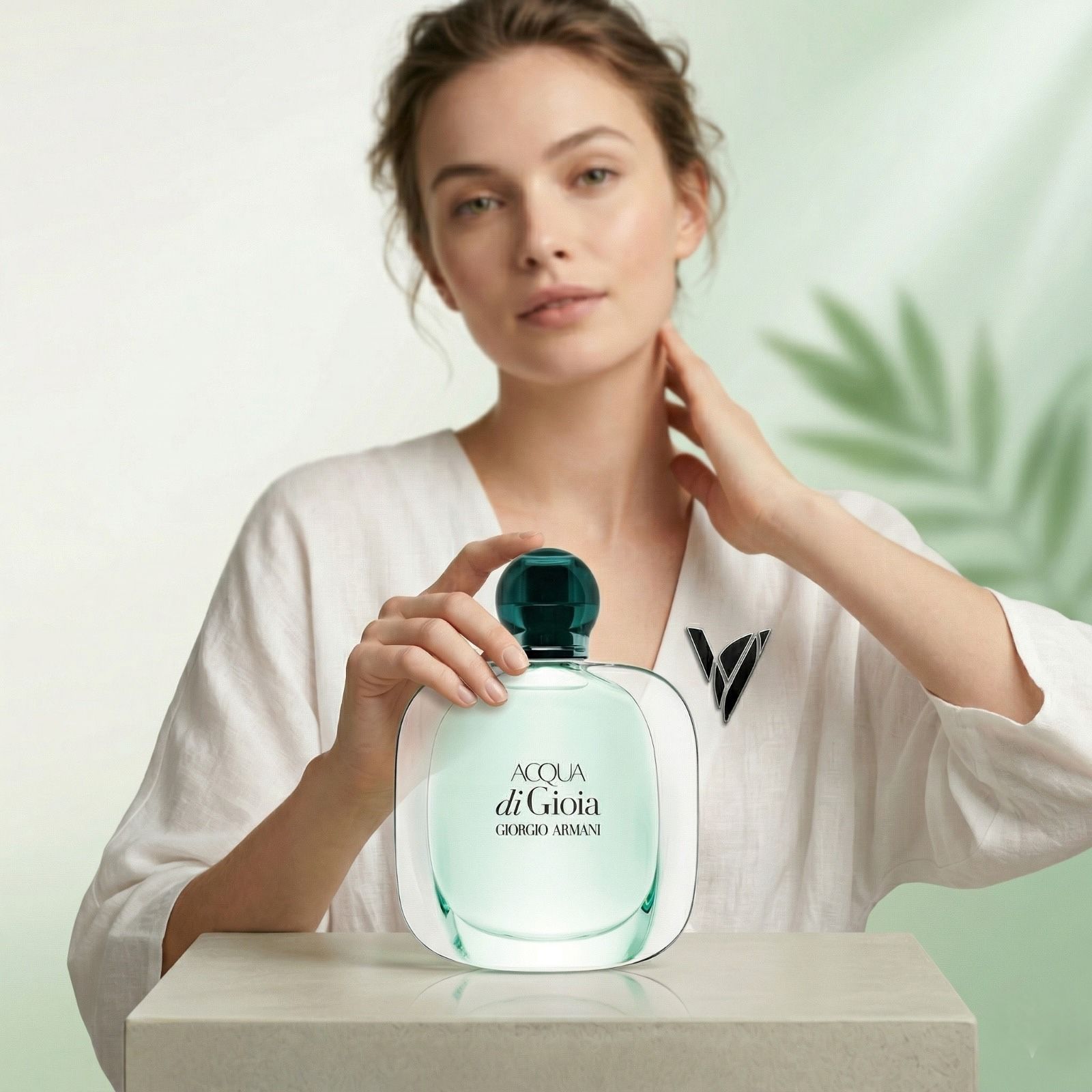 Acqua di Gioia de Giorgio Armani: El agua como fuente de vida. Alegre, pura, serena. Giorgio Armani inventa el perfume de la alegría, de la emoción a flor de piel. La esencia de la emoción extraída del corazón de los elementos de la naturaleza, una alegre escapada mediterránea entre el mar y la tierra. La armonía perfecta entre mujer y naturaleza. Al ofrecer los elementos esenciales para la vida, Giorgio Armani ofrece la alegría al igual que el agua, la alegría es esencial...