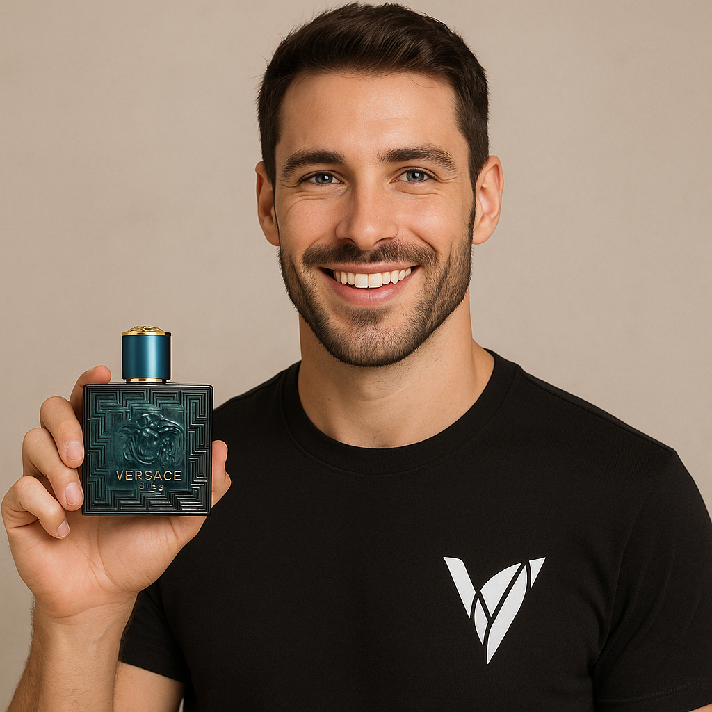 El nuevo eau de parfum Eros, masculino y confiado, es una fragancia para hombres atrevidos y apasionados. El aroma sensual fusiona notas amaderadas, orientales y frescas para crear un potente perfume que evoca a Eros, el dios del amor. La nueva fragancia se presenta en una botella geométrica en azul y oro con detalles Medusa y Greca de tacto agradable