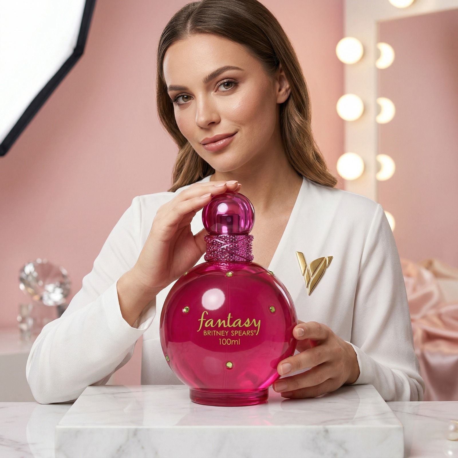 Fantasy es la segunda fragancia de Britney Spears, lanzada en 2005. Se trata de una poción de amor contenida en un bello frasco adornado con cristales de Swarovski. La fragancia es sensual y golosa. La salida tiene una mezcla de frutas: lichi, membrillo y kiwi. El provocativo corazón se compone de jazmín y chocolate blanco. El fondo combina raíz de orris, almizcle y madera.